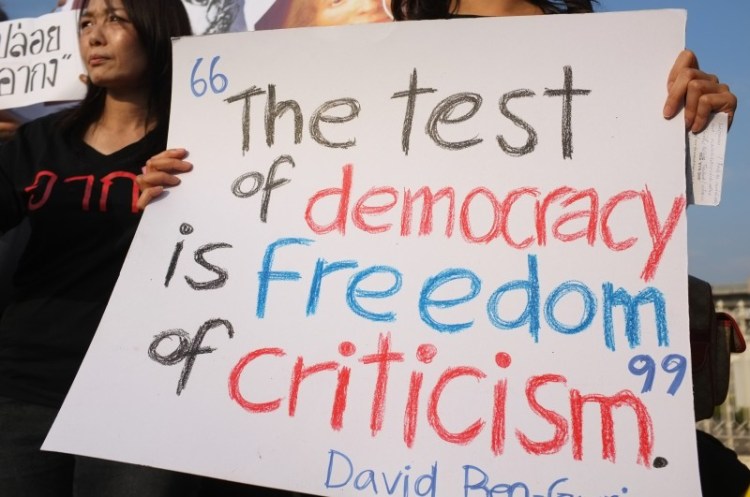 The law encompasses many actions deemed to be of offence to the reigning sovereign, including defamation of images of the King, text messages, written and spoken affronts. The law even includes a ban on the purchase of texts depicting a negative portrayal of the King –take for instance, the controversial book The King Never Smiles,which is not only prohibited in Thailand, but also subject to Internet censorship. Prominent political activist and magazine editor Somyot Prueksakasemsuk was sentenced to ten years imprisonment under lèse-majesté for printing remarks that were both insulting and threatening to the King. Denied bail 12 times a mere 10 months into his sentence, human rights groups argue he has been denied his right to freedom of expression. His arrest has been met with protests on the streets and across universities in Thailand. Streckfuss declares that those imprisoned under lèse-majesté are not granted the right to a fair trail due to the way in which an investigation to uncover the ‘actual truth’ may involve further defamation of monarchical dignity by making accusations public. With a phenomenal 1,500% increase in lèse-majesté cases since 2006, the legislation remains unchallengeable. Those who wish to campaign for the abolition of Article 112 themselves risk being prosecuted under lèse-majesté.