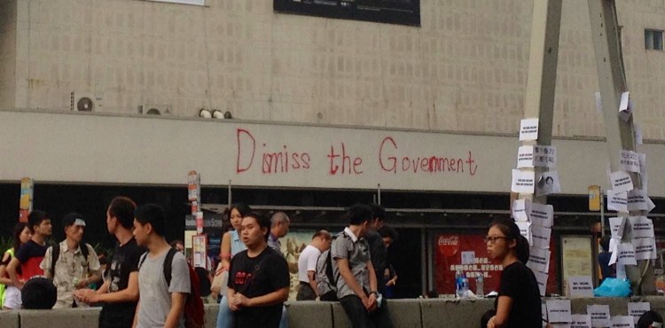 In this video, protestors chant “Ha Toi”, Cantonese for “Step Down”, directed at Hong Kong Chief executive CY Leung.