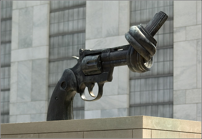 Right: Non-Violence by Carl Fredrik Reuterswärd, photographed by Timothy Vogel