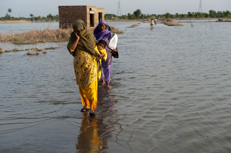 A family crosses the flooded streets of Pakistan. Source: Flickr.